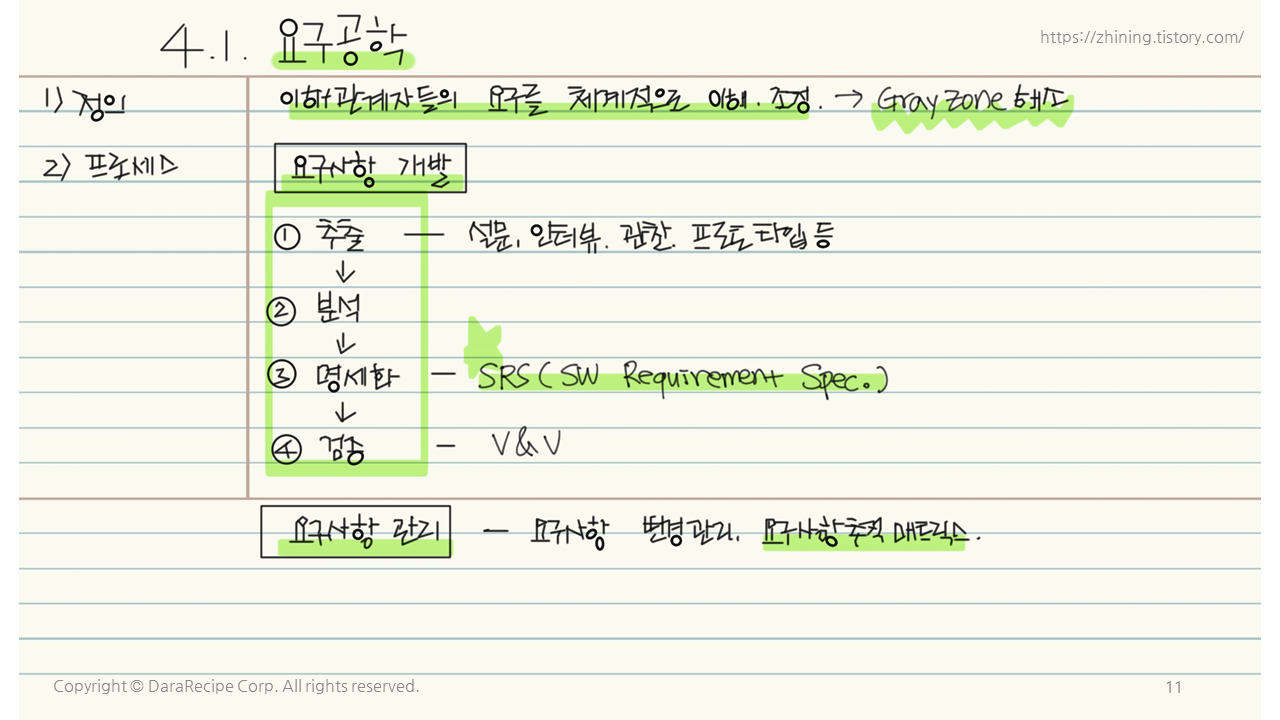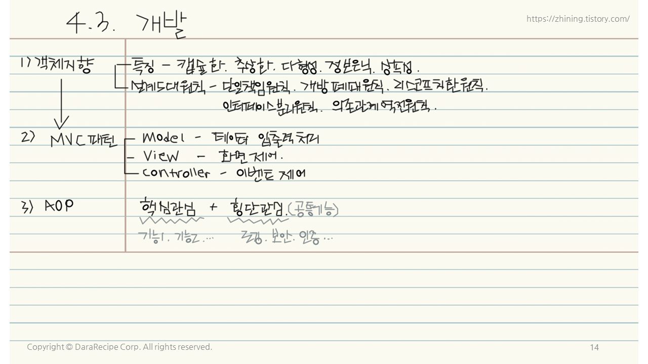 | 4. 소프트웨어 개발 프로세스(상세) : 요구사항분석 - 설계 - 개발 - 테스트 - 유지보수 |